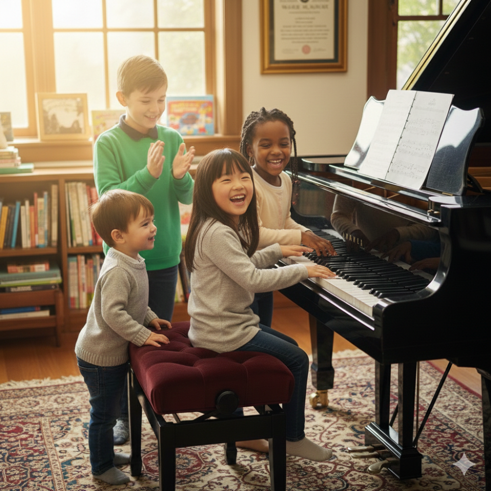 A. もちろん大歓迎です!無理に弾かせるのではなく、まずは「音を楽しむ耳」と「リズム感」を育てることからスタートします。